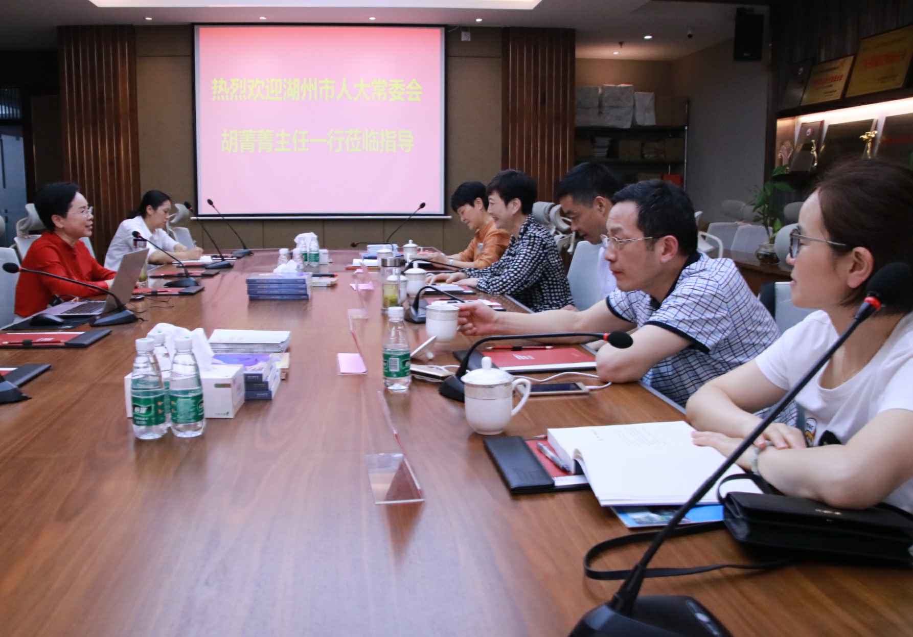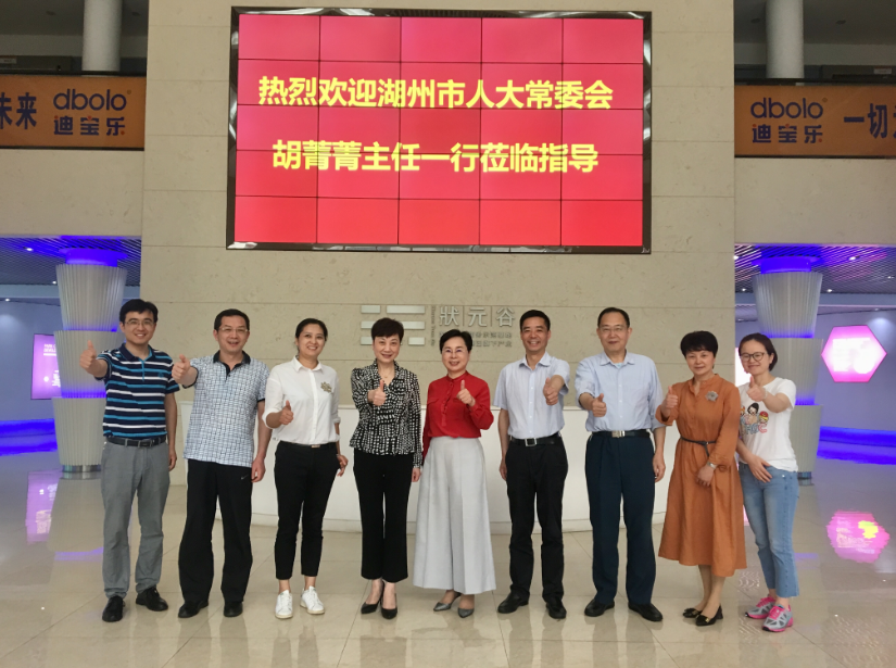 4月26日,湖州市人大常委会胡菁菁主任一行莅临星空手机站登录入口-星空online(中国)总部考察指导,集团董事长、广东省湖州商会会长官金仙热情接待了胡主任一行。