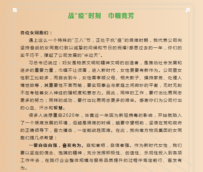 又是一年三八节,官金仙董事长暖心寄语公司女性职工